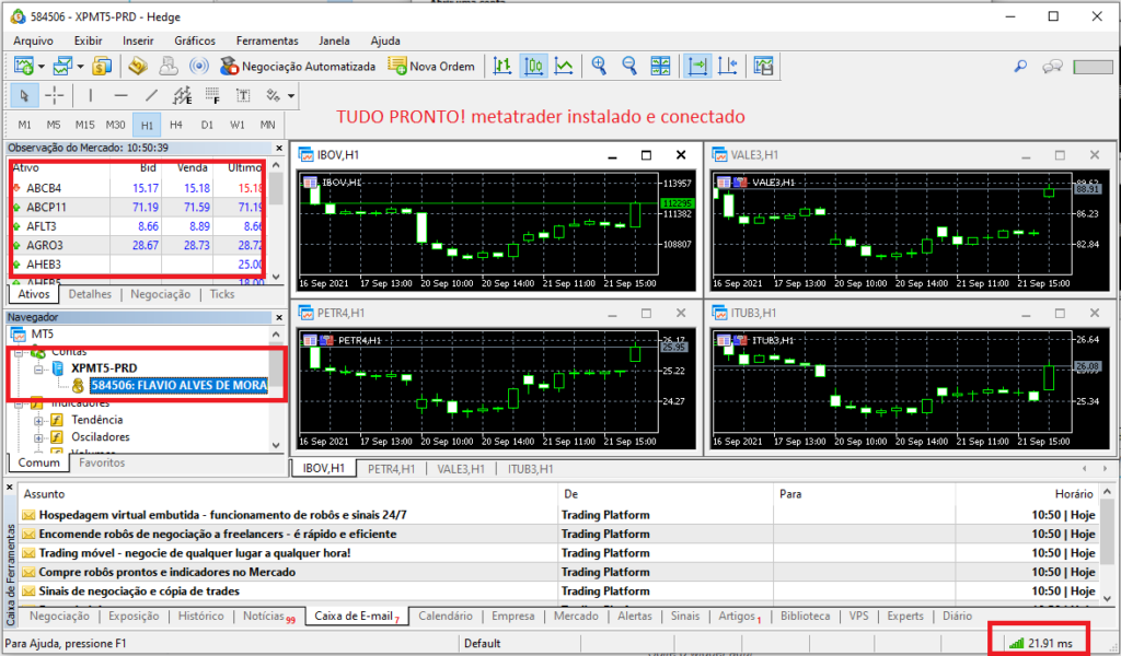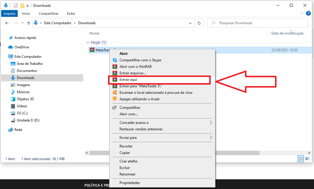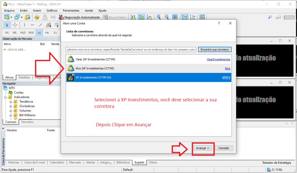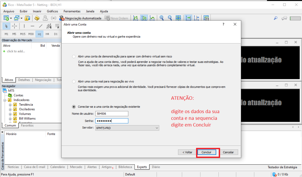 Esta com problemas em ativar o Robô no Gráfico do Metatrader 5? Quando você arrasta o robô para o Gráfico ele desaparece do Gráfico? A solução é bem simples.Basta seguir os passos abaixo para que você possa utilizar nossos robôs sem nenhum problema. Passo 1: download da pasta do Metatrader 5 Download do Metatrader 5 Passo 2: descompactar arquivo Passo 3: Renomear pasta de arquivos Passo 4: Copiar pasta de arquivos Passo 5: Colar pasta de arquivos no diretório "ARQUIVOS DE PROGRAMAS (X86)" Passo 6: Abra a pasta e execute o arquivo a seguir Passo 7: Com o Metatrader aberto, agora você precisa fazer login na sua conta Pronto! Tudo certo, processo finalizado