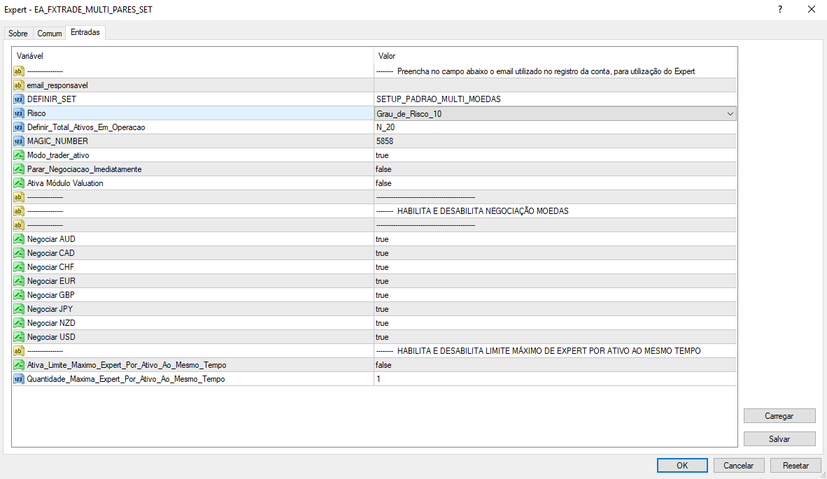 Para testar o Multi Moedas set, acesse: https://eafxtrade.com/robo-multi-moedas/