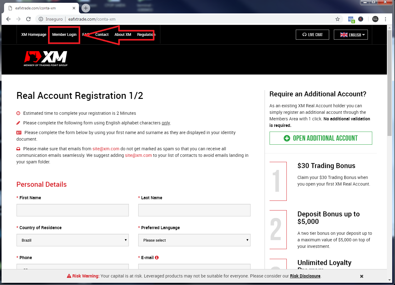 PASSO 1 – Acesse https://eafxtrade.com/conta-xm